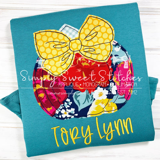 1210 - PUMPKIN WITH BIG BOW - APPLIQUE CHILD SHIRT