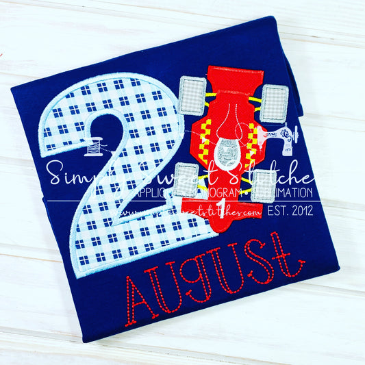 1448 - RACE CAR BIRTHDAY NUMBER - APPLIQUE CHILD SHIRT