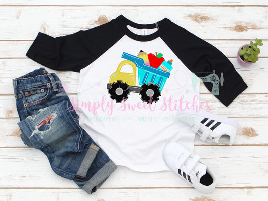 1401 - BACK TO SCHOOL DUMP TRUCK - APPLIQUE CHILD SHIRT