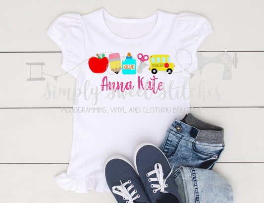 1477 - GIRL SCHOOL SUPPLIES - HEAT PRESS CHILD SHIRT