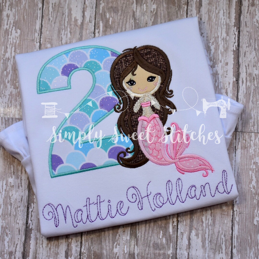 1377 - FANCY MERMAID BIRTHDAY NUMBER - APPLIQUE CHILD SHIRT