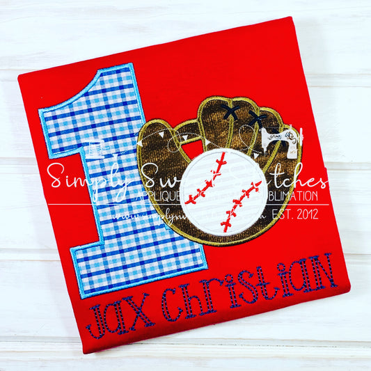 1380 - BASEBALL BIRTHDAY NUMBER - APPLIQUE CHILD SHIRT