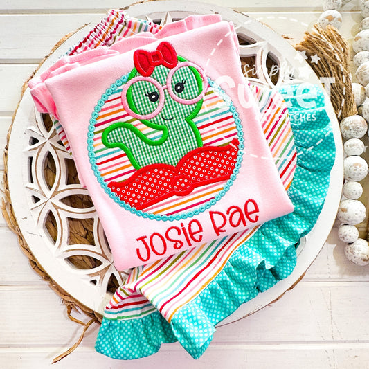 1437 - GIRL BOOK WORM CIRCLE - APPLIQUE CHILD SHIRT