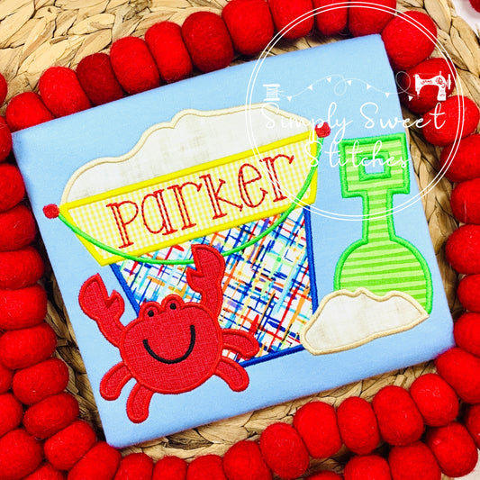 1036 - BOYS SAND PAIL WITH CRAB - APPLIQUE CHILD SHIRT