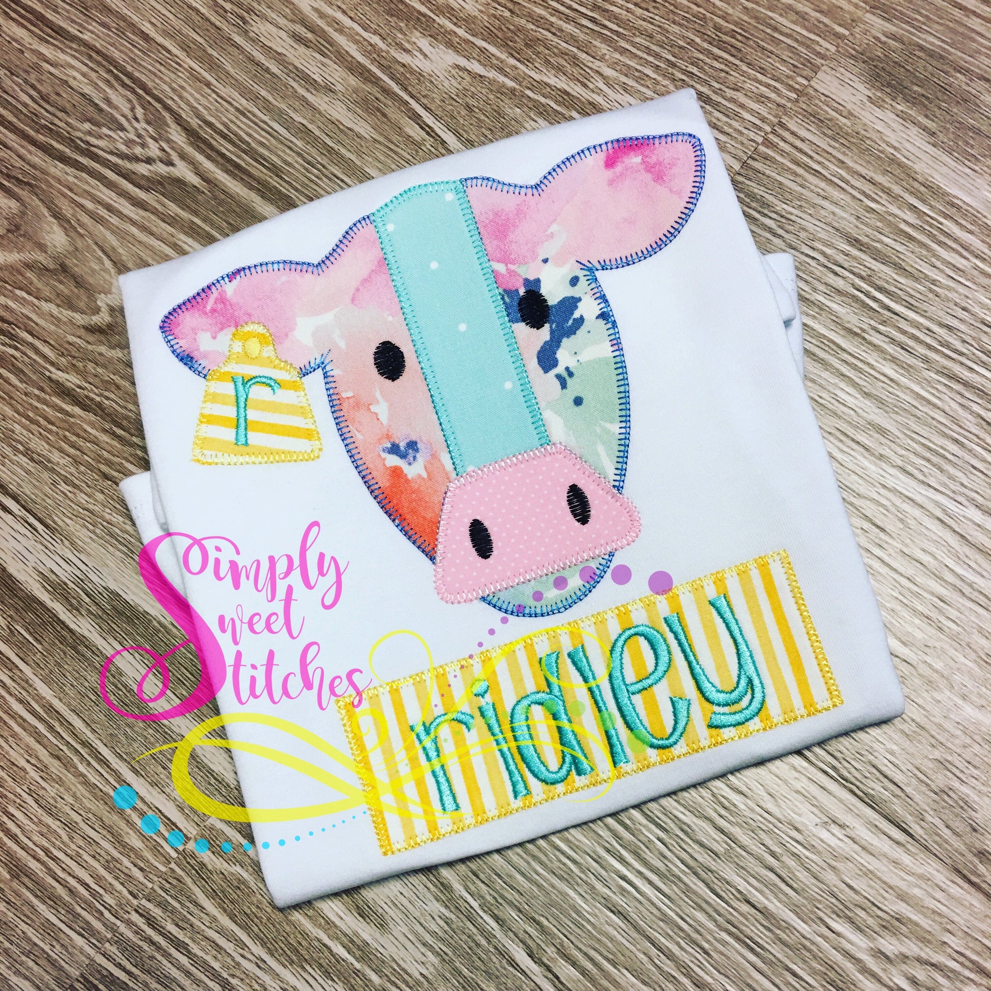 1030 - GIRL FARM COW - APPLIQUE CHILD SHIRT
