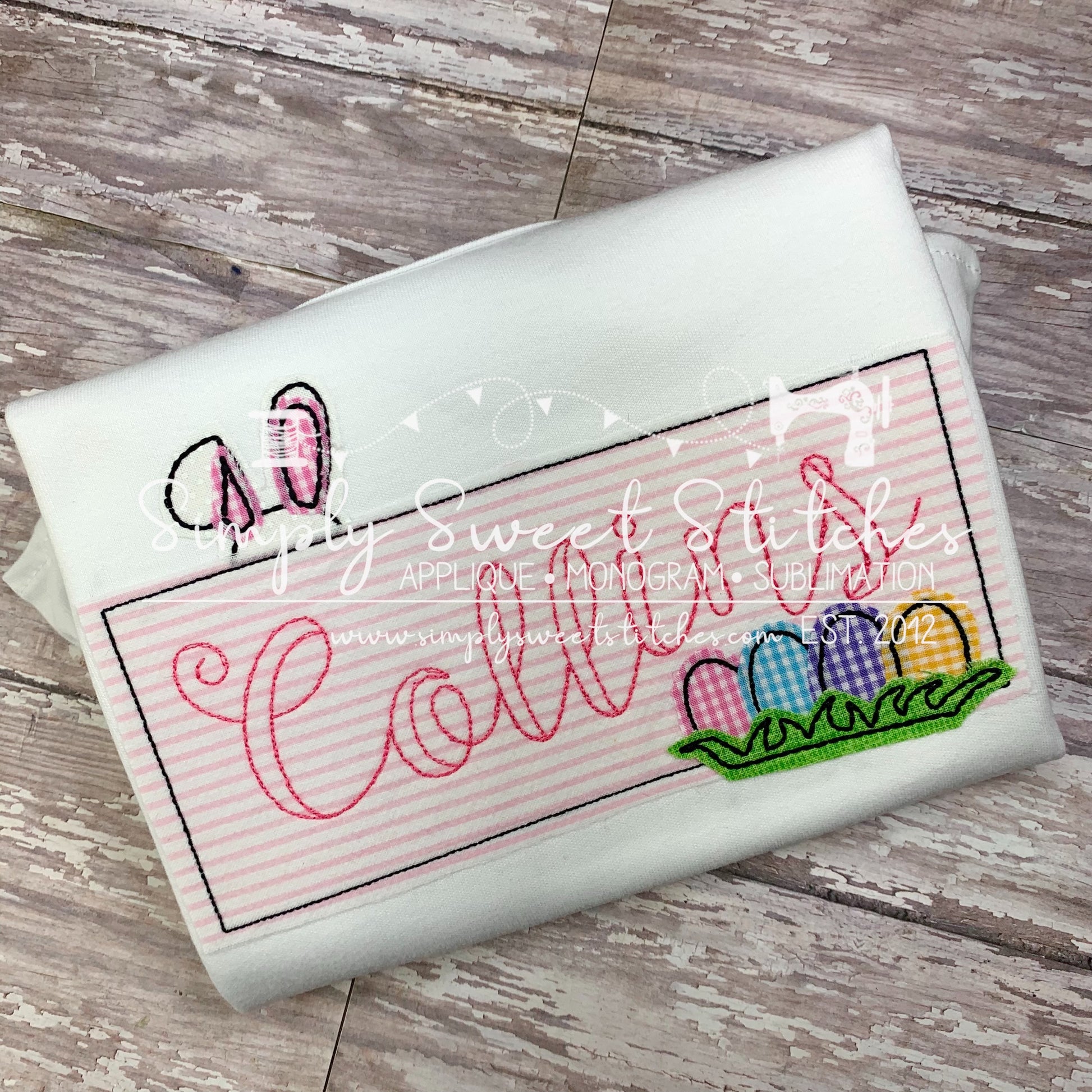 1508 - EASTER BUNNY BANNER WITH EGGS - APPLIQUE CHILD SHIRT