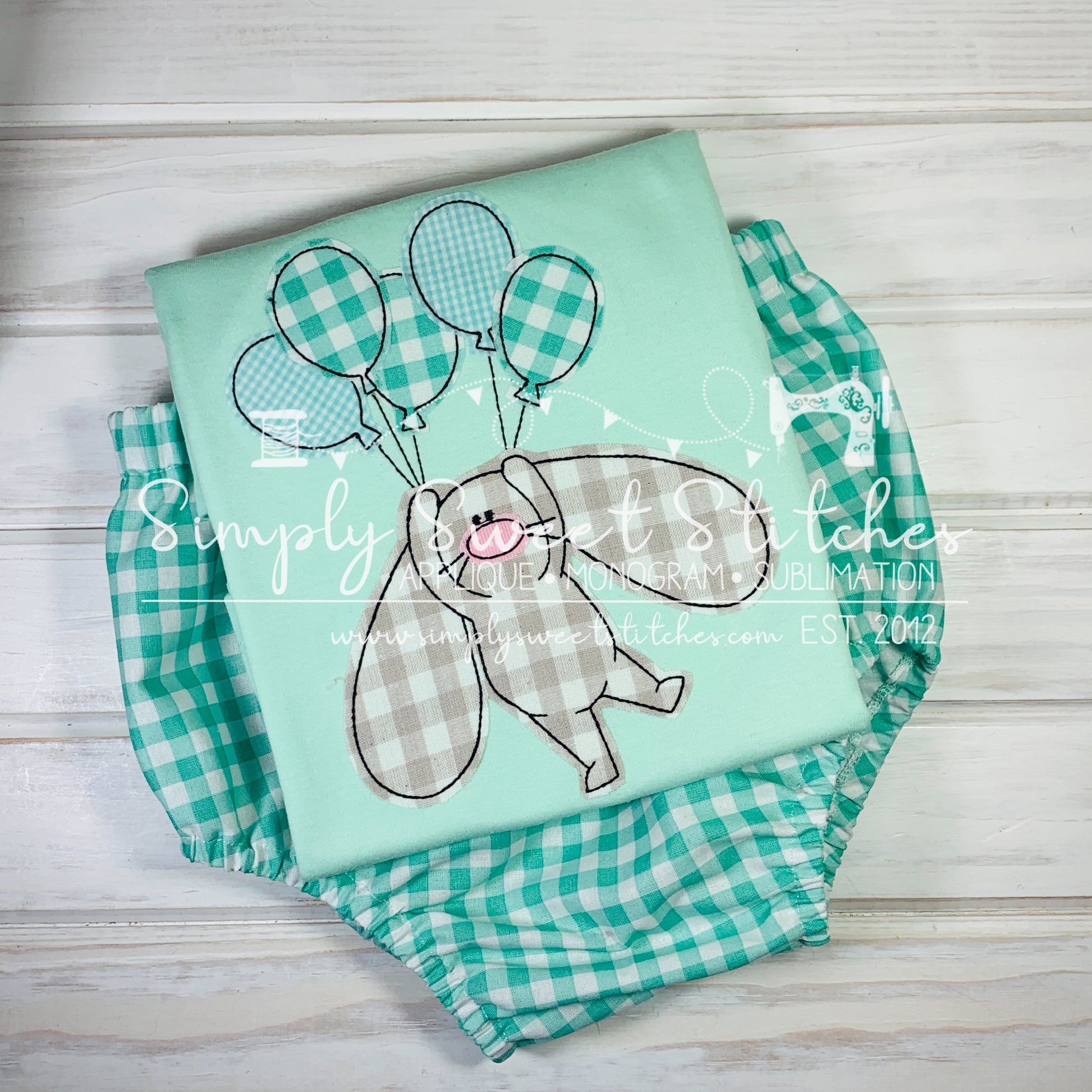 1549 - EASTER BUNNY WITH BALLOONS - APPLIQUE CHILD SHIRT