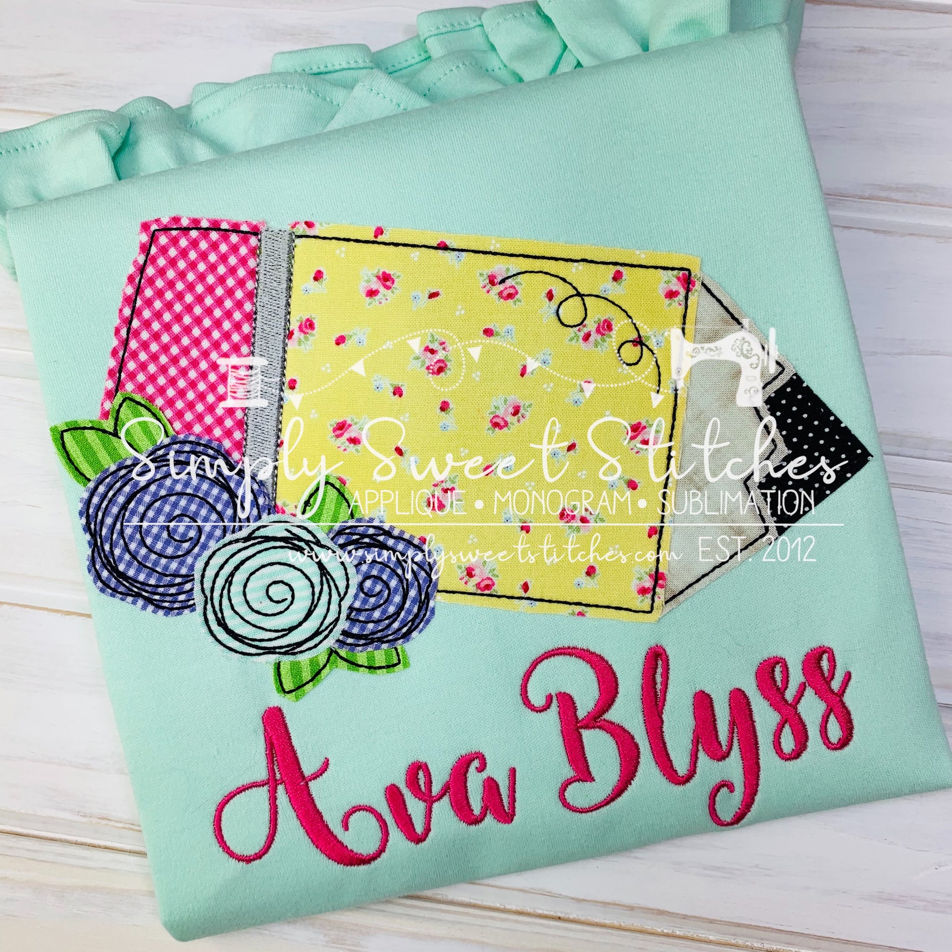 1698 - FLORAL PENCIL - APPLIQUE CHILD SHIRT