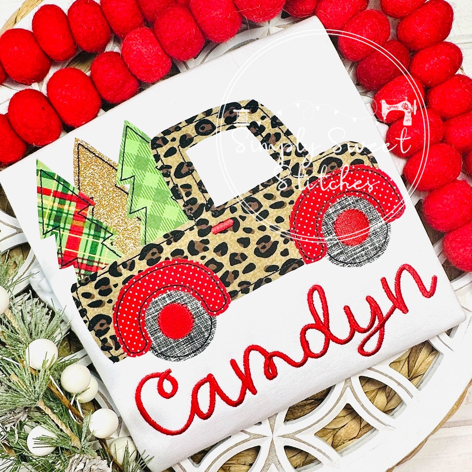 2775 - CHRISTMAS TRUCK WITH TREES - APPLIQUE CHILD SHIRT