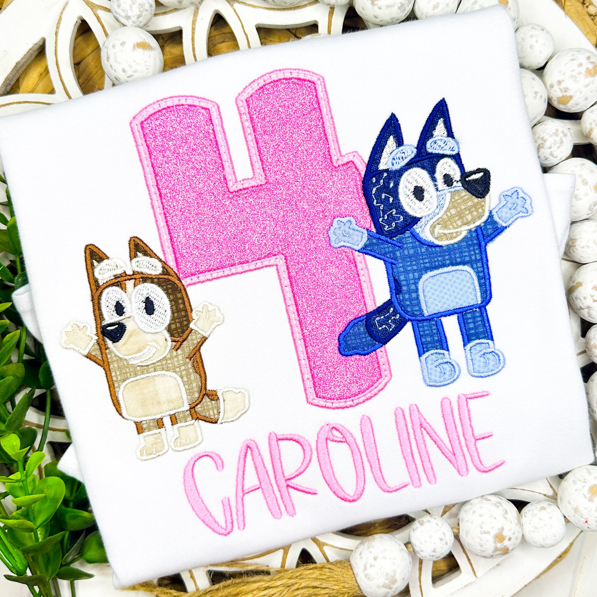 2153 - BLUEY BIRTHDAY NUMBER - APPLIQUE CHILD SHIRT