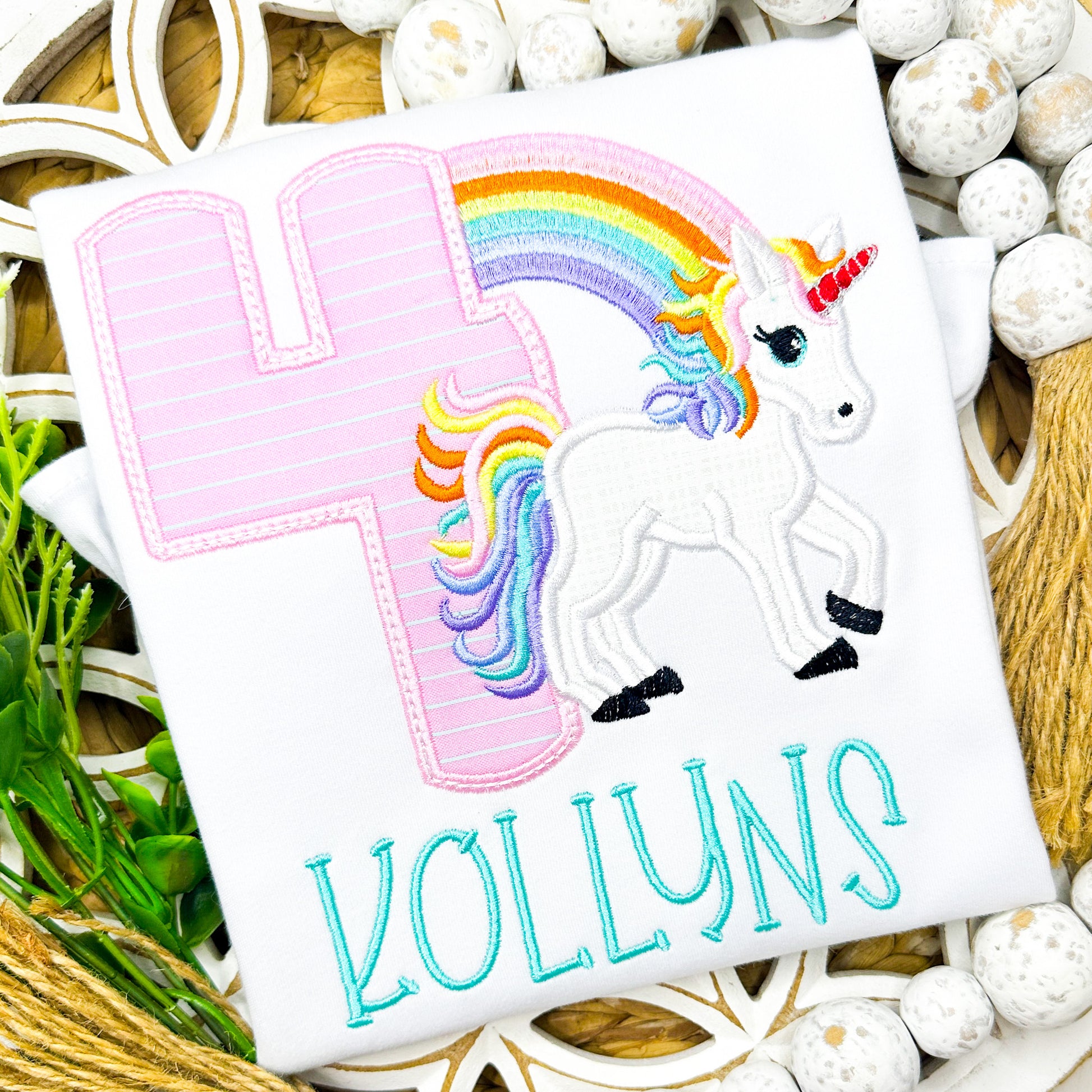 2277 - RAINBOW UNICORN BIRTHDAY NUMBER - APPLIQUE CHILD SHIRT