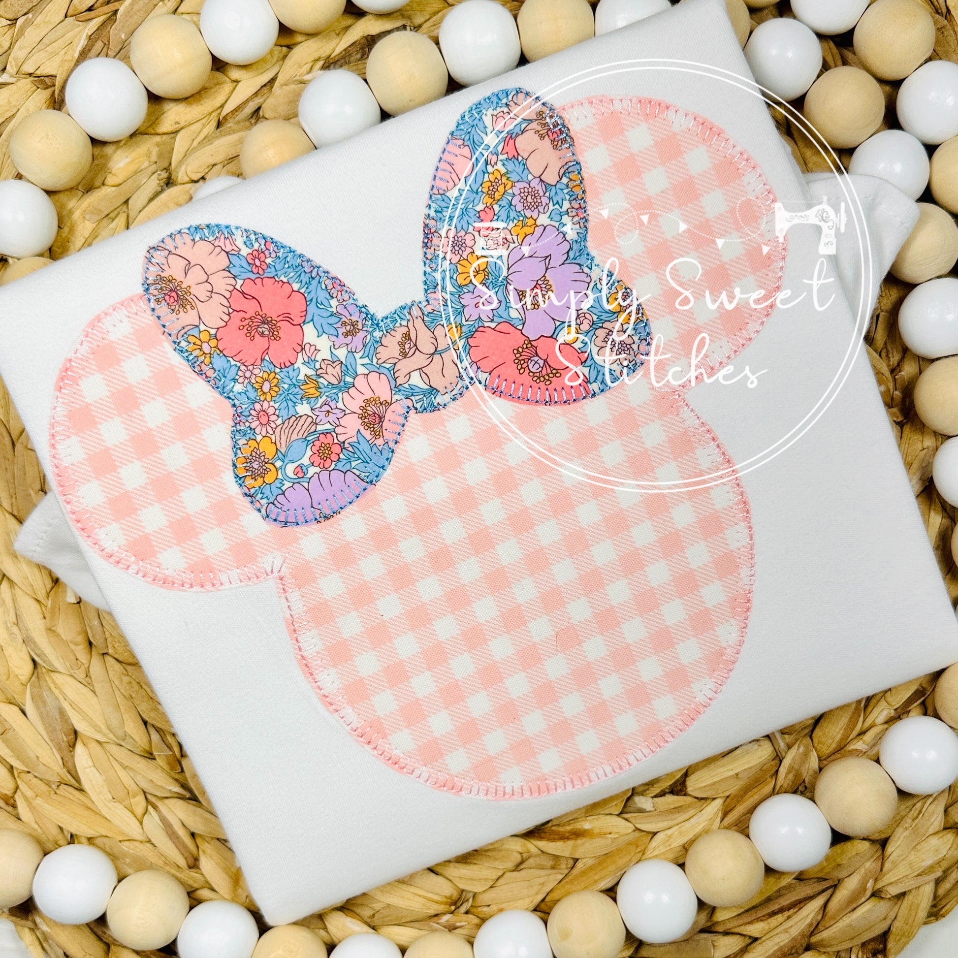2494 - MOUSE HEAD WITH FLORAL BOW - APPLIQUE CHILD SHIRT